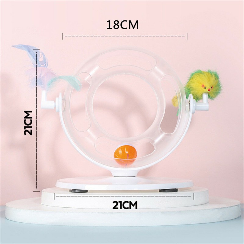 Cat Roller Coaster Toy Interactive Round Shape Toy 360° Rotation Toy with Ringing Bell Non-slip Design for Cats - White